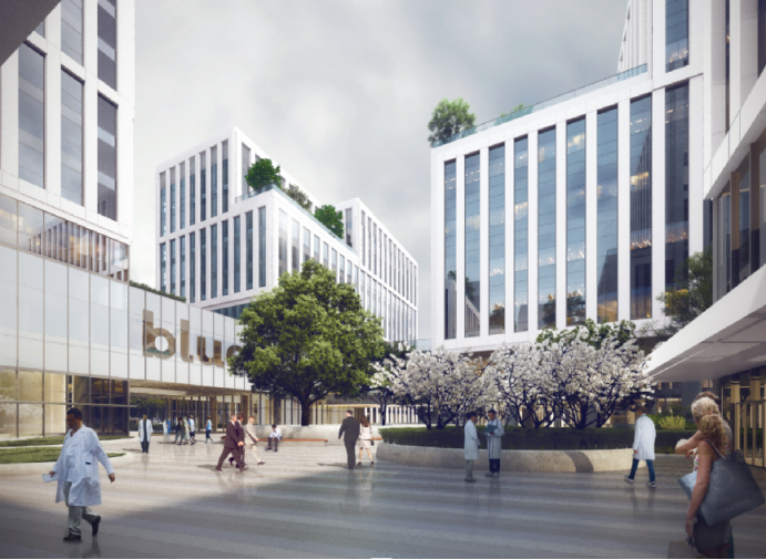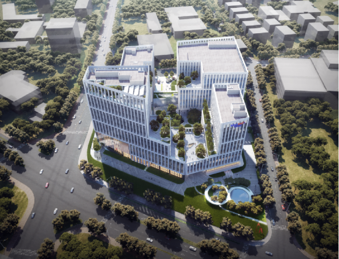 该项目主要由4栋高层建筑通过架空连廊组合而成,其中地块东北角拟建1幢12层的研发配套楼、西北角拟建1幢8层的生产1#楼、西南角拟建1幢10层的生产2#楼、东南角拟建1幢15层的总部研发楼。